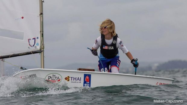 Holding onto third place overall is Costa Rica’s Mic Sig Kos Mohr. Still in contention for medals are the USA’s Stephan Baker, China’s Haoze Fang, and Israel’s Roy Levy. Coming up on their heels are four sailors who made significant gains on the penultimate day of racing, including Thailand’s Panwa Boonnak who slipped into tenth overall with an impressive first place finish in the last race of the day.