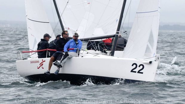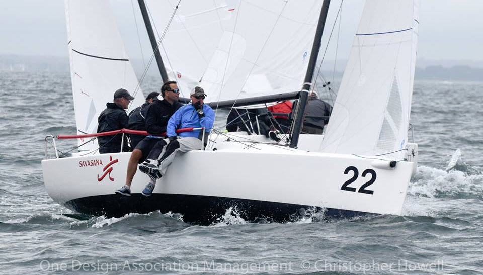 South Dartmouth, MA (August 6, 2017) – Brian Keane’s Savasana began today in third place at the second annual J/70 US Corinthian National Championship but his team of Adam Burns, John Goller and Mark Liebel closed strong to take the title.