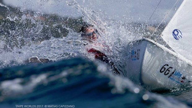 A Coruña, Spain (August 9, 2017) – The third day at the Snipe World Championship began racing in the gold and silver fleets, with two races completed for both groups. With the finishing position from the qualifying series moving to the final stage as the non-discardable first race, the favorites in the gold flight struggled for consistency, with points now tight for the overall lead. The top ten North American team is Raul Rios/ Mac Agnese (PUR) in third. Racing continues through August 11.