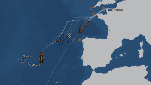 Positioned furthest north of the Imocas, Jean Pierre Dick and Yann Eliès on St-Michel Virbac caught the wind rotation to the northwest first. In strong, reaching conditions, the favourites have extended their lead to over 20 miles over the continually impressive foil-less SMA (Meilhat-Gahinet), who seem to be holding off the more modern foiling boats behind them. The battle of the Azores is just beginning and St-Michel Virbac, making 18.5 knots is neck-and-neck with the leading Multi 50, Arkema, with the two fleets intertwined.