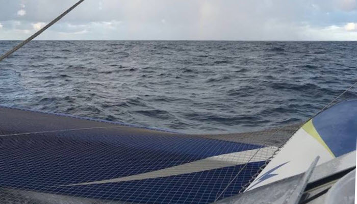(November 8, 2017; Day 5, 23:30 FR) – The advance held by François Gabart in his bid to set a new single-handed round the world time has slipped further as he is not able to hold a straight course as did record holder Thomas Coville. The skipper of the 30m MACIF trimaran, who is 40.57 nm ahead of the record pace after covering 568.5 nm in the past 24 hours, is dealing with sub 10 knot easterly winds while 430 nm to the north of the Equator.