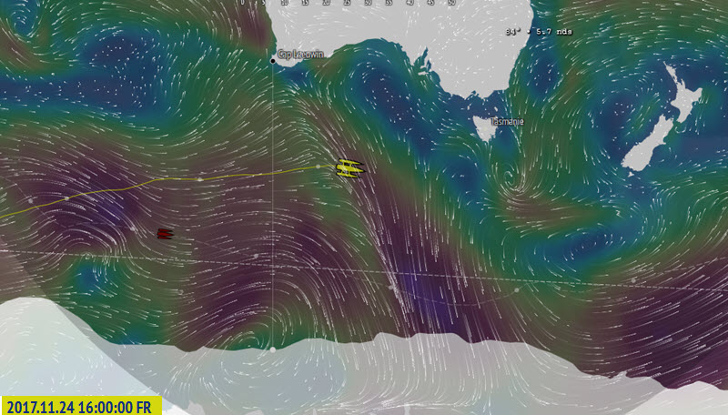 Sailing at an average of 30 knots since Tuesday night (Nov 21), ahead of a large low pressure system typical of the South Seas, the skipper of the 30m MACIF trimaran crossed the longitude of Cape Leeuwin, second of the three capes of this round the world, after the Cape of Good Hope and before Cape Horn, today at 00:15 (UTC+1).