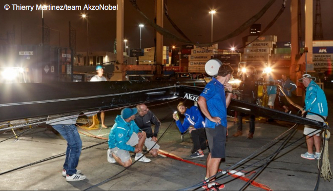 “We are confident of being on the start line with the boat back to 100 per cent,” said team AkzoNobel skipper Simeon Tienpont. “We needed a quick turnaround after arriving late but some fantastic work by our shore team, the Volvo Ocean Race staff and the guys from Southern Spars means we will be able to race competitively on Leg 4.”