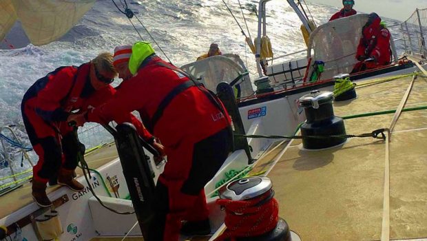 Qingdao Skipper Chris Kobusch remains upbeat, despite a bout of seasickness amongst his crew, saying: “The crew keeps the morale up and fights our way through the waves. Lots of us watching the GRIB files again and again though, hoping the forecasted change in wind direction comes sooner the more we look at it.”