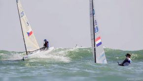 Cádiz, Spain (March 12, 2018) – Nicholas Heiner (NED) takes the lead on the opening day of the 2018 Finn