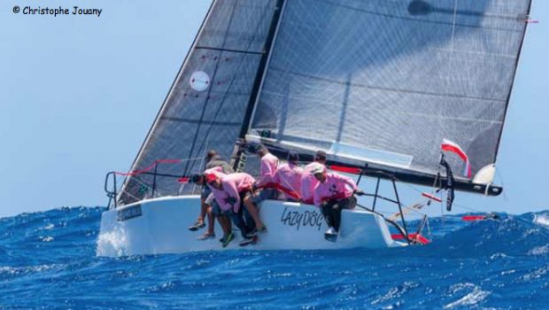 The Melges 32 Lazy Dog took second place today and sits in second overall; and Albator, the NMD 43 is in third with 14.5 points.