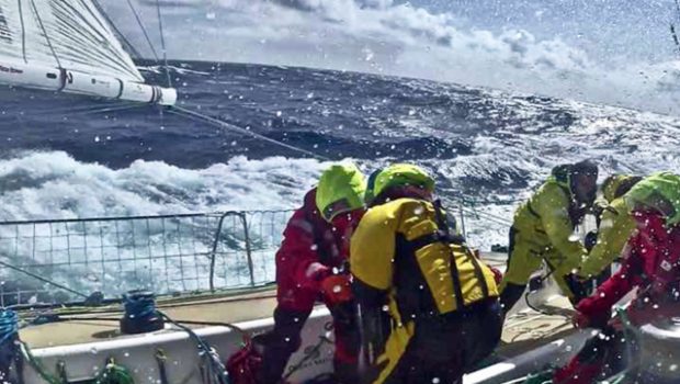 On Visit Seattle, the Skipper was also full of praise of her crew for managing not only the tough conditions, but also carrying out the same tricky repairs. Nikki Henderson comments: “This morning, two hours after dawn, we finally finished repairing the mast track. Just before the storm hit, two sections of the track that our mainsail slides up on ripped out the mast.