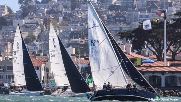 Sailors competing in Class ORR-B began their day on the Treasure Island racecourse, and while the flood tide effectively lengthened each beat, the fastest teams did a great job finding maximum current relief along the Cityfront.