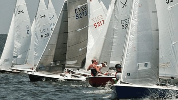 One point behind in third was Jeff Neaurater (Alexandria, VA), sailing with Heather Howard. In the B Division, Mike Sigmund and Brett Auer (Chapel Hill, NC) stands two points ahead of Michael Major and Carrie Quinn (Washington, DC) in second.