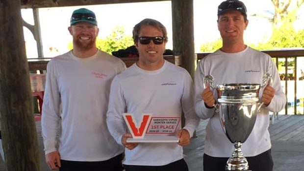 The 2018-19 Viper Winter Series got underway with 26 boats on December 15-16 in Sarasota, FL. For the first event of the 3-stage series, light winds allowed for four races on day one but failed to build for any racing on day two. Christopher Stocke (above) posted all top three scores to take the first event, finishing one point ahead of Marcus Eagan with Peter Beardsley one point further back in third.