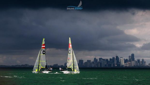 The top two boats have started to edge away from the fleet. Samuel Albrecht and Gabriela Nicolino de Sá (BRA) maintain the overall lead, but have just four points over Jason Waterhouse and Lisa Darmanin (AUS). Third place, John Gimson and Anna Burnet (GBR) is 16 points further back.
