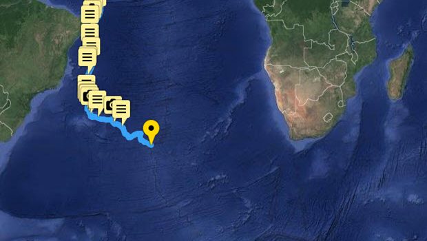 (February 5, 2019; Day 37) – Alex Alley (GBR) remains on track in his pursuit to break the Solo Non-Stop Around the World Record in his 40-foot yacht – Pixel Flyer. Located at 35°S (at 20:00 UTC) in the South Atlantic, his southeasterly course has him avoiding the St. Helena High aiming toward Cape Agulhas and into the Indian Ocean.