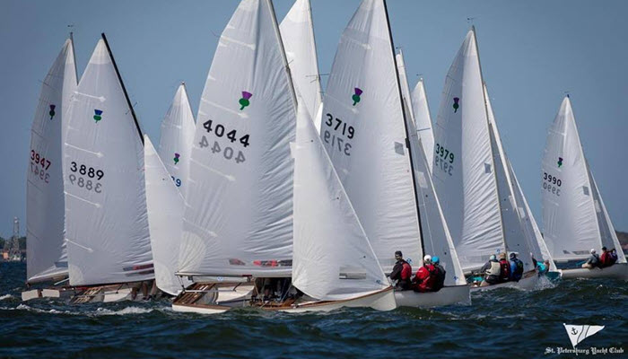 St. Petersburg, FL (February 25, 2019) – Matt Fisher and his team of Wayne Pignolet and Sarah Paisley were perfect on the opening day of the Thistle Midwinters East, posting two bullets to take the early lead over the 33-boat fleet. Fisher is followed by Jesse Shedden and John Baker who are tied on five points with Shedden in second on countback.