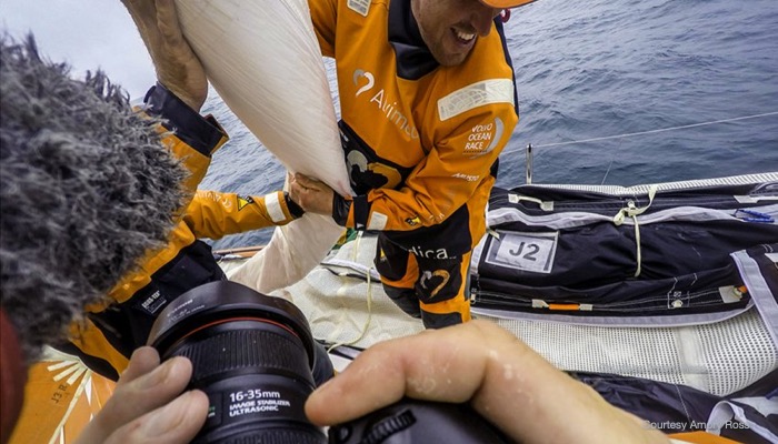 When choosing equipment for an event like the Volvo Ocean Race, Ross’s first considerations are two things: size and weight. “That drives and dictates our gear-making decisions. These are light boats in the midst of a race,” he reiterates. When you need to snap a photo while getting rocked and sprayed with salt water, you want gear that won’t get in the way.