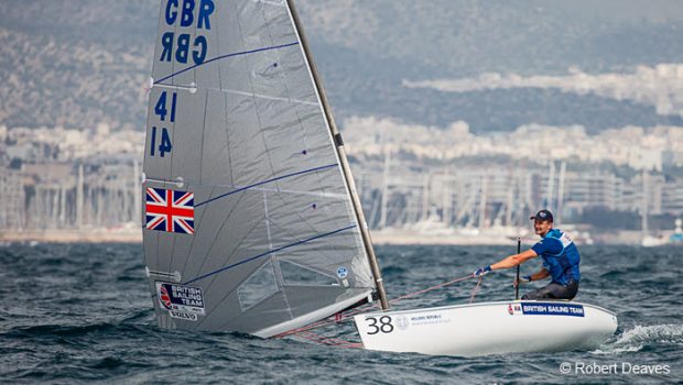 Athens, Greece (May 14, 2019) – Giles Scott (GBR) leads after the first day of racing at the 2019 Finn Open Europeans following three races. Scott won two races and placed third in the other to hold a four-point lead over Andy Maloney, from New Zealand, who won the second race of the day.