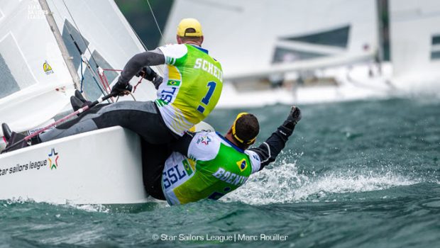 After a general recall, the Race officer elected to fly the U flag on the second attempt to get the start away, but many were still early on the heavily port-biased line, with fully seven boats picking up a UFD for being over at the start. Many of those caught were top names, including series leaders Robert Scheidt (BRA) and Henry Boening (BRA). Scheidt was sanguine about their misfortune, perhaps reflecting the impressive series he has put together so far, leaving him top of the leaderboard after he discards today.