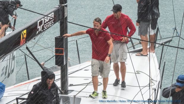 Mallorca, Spain (August 27, 2019) – A series of thunderstorms put plans to rest on the third racing day here at the Rolex TP52 World Championship Puerto Portals 2019. The fleet of 11 boats was held ashore while a first squall blew through with strong winds, torrential rain and lightning. With another one forecast and tracked on the real time weather maps, racing was cancelled for the day.