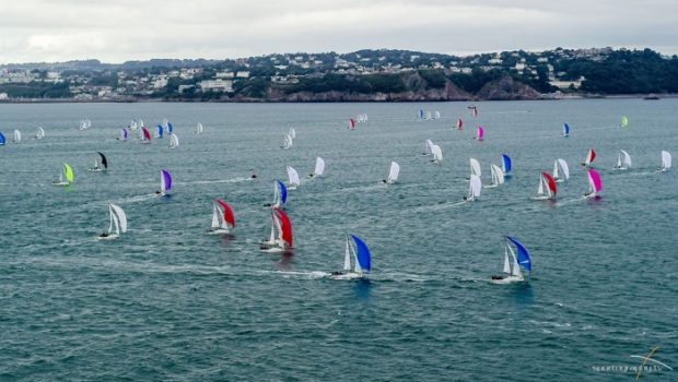 Torquay, Devon, UK (September 2, 2019) – The Darwin Escapes 2019 J/70 World Championship kicked off today with three races. Big wind shifts and changes in wind speed tested the 78 teams competing as well as the Race Management team led by Stuart Childerley.