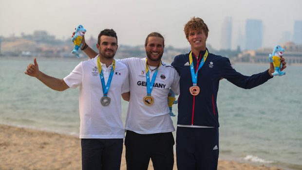 Doha, Qatar (October 16, 2019) – After Daniela Moroz (USA) won the gold medal yesterday in the women’s kitefoil racing competition at the inaugural edition of the World Beach Games, former world and European champion Florian Gruber (GER) won two consecutive races in the final to become the first men’s Kitefoil Racing ANOC World Beach Games champion.