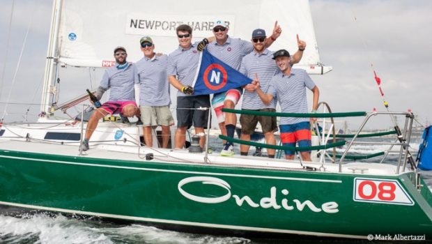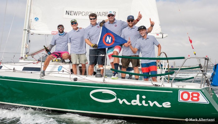 The Newport Harbor Yacht Club team was skippered by Justin Law, and crewed by Bill Menninger, Alex Curtiss, Daniel Geissmann, John Peschelt, and Peter Kinney.