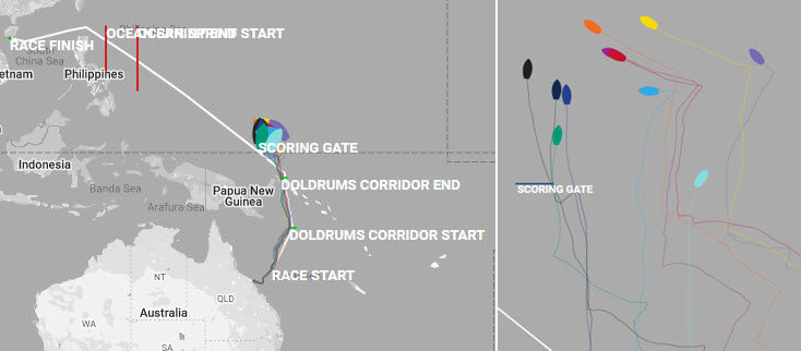 Motoring: In case of light winds and slow progress within the defined Doldrums Corridor, teams had the option to use their motor for prescribed amount of time and distance. Details.