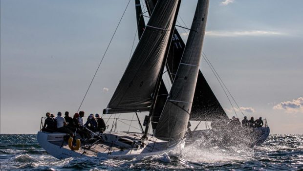 Newport, RI (October 3, 2020) – The New York Yacht Club Race Committee fired off another three races on Day Two of the Melges IC37 US National Championship. Teams were held onshore under postponement until the sea breeze built up to 7-15 knots.