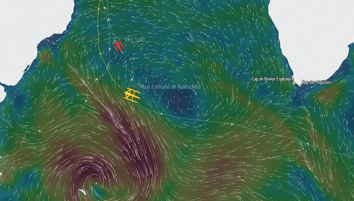 After covering more than 5,500 miles over the ground since leaving Ushant, making an average speed of 28 knots, the crew led by Franck Cammas and Charles Caudrelier is about to reach one of the first objectives it had set itself. Indeed, coordinating their connection with a train of austral low-pressure systems is a crucial point for this start to the record and a very tricky section for tackling the Indian Ocean with a competitive time. The six sailors have managed to absolutely nail the timing of this first major appointment.