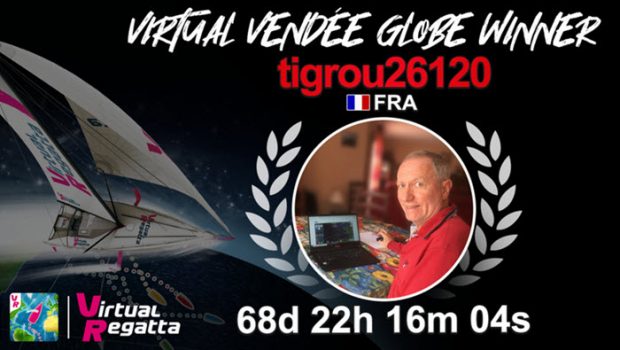 Frenchman Jean-Claude Goudon, known on Virtual Regatta as “tigrou26120,” was the first to cross the finish line, setting a new record of 68 days, 22 hours, 16 minutes, and four seconds in the process.