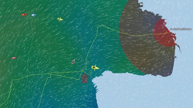 The Bay of Biscay will be the arena for the ultimate showdown. In the south, Dalin and Herrmann work the shortest most direct along Cape Finisterre while Burton, Ruyant, and Bestaven on the longer, faster route from the north.