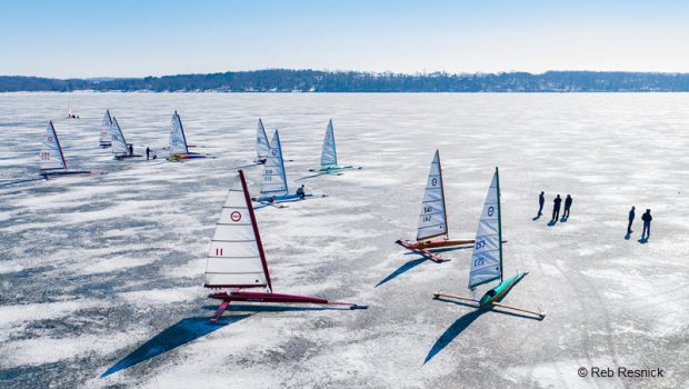 Photographer Reb Resnick was on Green Lake (WI) during the Renegade Championship and Nite Commodore’s Cup with his drone. To check out his gallery of Wisconsin ice sailing images, click here.