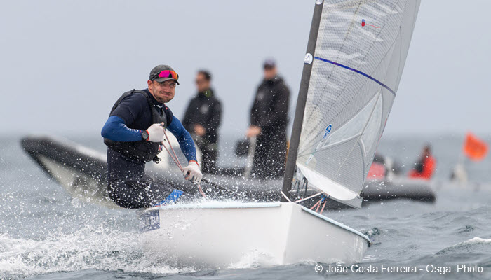 Vilamoura, Portugal (April 14, 2021) – Fortunes changed for many on the third day of 2021 Open and U23 Finn European Championship after two more races in great conditions, yet as tricky as ever, and a discard now shuffling the standings.