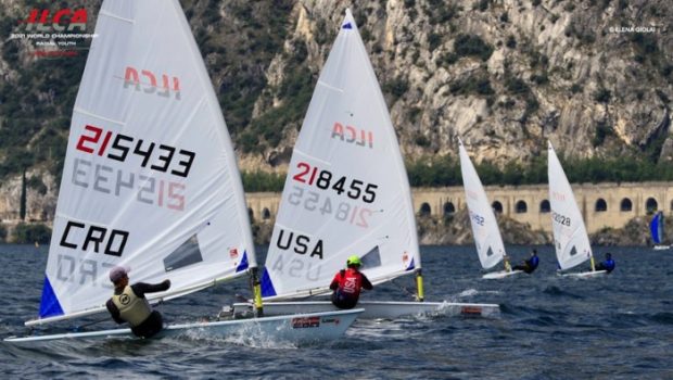 Arco, Italy (July 27, 2021) – It was a tough day on the water for the Race Committee at the 2021 ILCA 6 (Radial) Youth World Championships in northern Lake Garda. With a less than promising forecast, the committee sent the sailors afloat three hours early to try to grab the last of a dying north breeze.