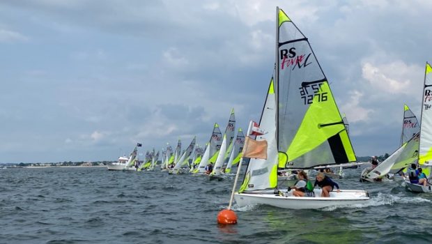 Thirty-two RS Feva’s competed for the 2021 RS Feva North American Championships hosted by Cedar Point Yacht Club in Westport, CT July 29-30th, 2021. A clinic was hosted the day prior to the event with support from the US Sailing Siebel Sailors Program.
