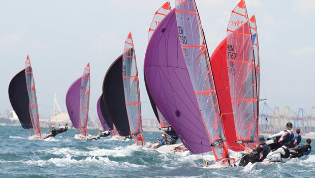 Valencia, Spain (August 26, 2021) – The 2021 Zhik 29er World Championship got underway today for the 189 teams which completed three qualifying races in a building sea breeze which reached 15 knots near the end of final race which saw the Oscar flag flying to signal pumping under class rules was allowed. With two days of qualifying remaining, the early leaders are Antonia Schultheis/ Ole Ulrich (MLT) with top North Americans JJ Klempen/ Steven Hardee (ISV) and Sophie Fisher/ Hoel Menard (USA) in third and fourth respectively.