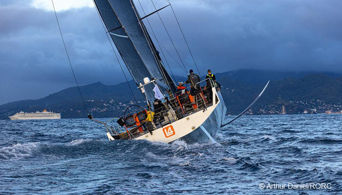 (January 18, 2022; Day 11) – The modified Volvo 70 L4 Trifork (DEN) finished the 2022 RORC Transatlantic Race yesterday at sunset in an elapsed time of 9 days 10 hrs 27 mins and 58 secs. L4 Trifork is the second monohull to finish the race and the first of three 70-foot monohulls. L4 Trifork’s IRC corrected time is not enough to beat the 100ft Comanche (CAY) for the overall lead.