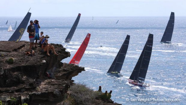 With 11 Caribbean islands along the route, the IRC Super Zero start was nothing short of hell-raising, with the VPLP/Verdier 100 Comanche reaching at full speed towards the Pillars of Hercules, then hardening up to take the inside line perilously close to the cliffs. VO65 Groovederci Racing – Sailing Poland, sailed by Deneen Demourkas was in close quarters.
