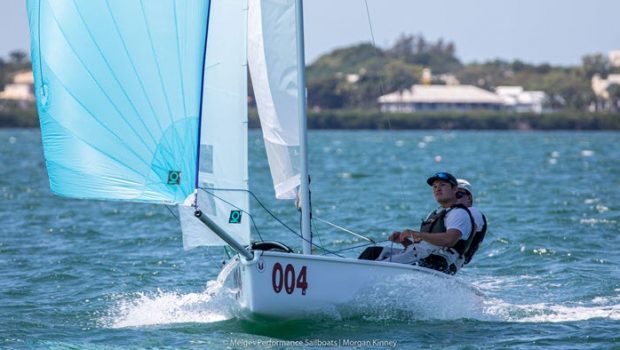 The 2022 Melges 15 Midwinter Championship attracted 64 teams on March 25-27 in Sarasota, FL The nine race series was dominated by Ripley Shelley and Harry Melges IV, winning the title before the final race. Emily Haig was the top female and third overall. – Details