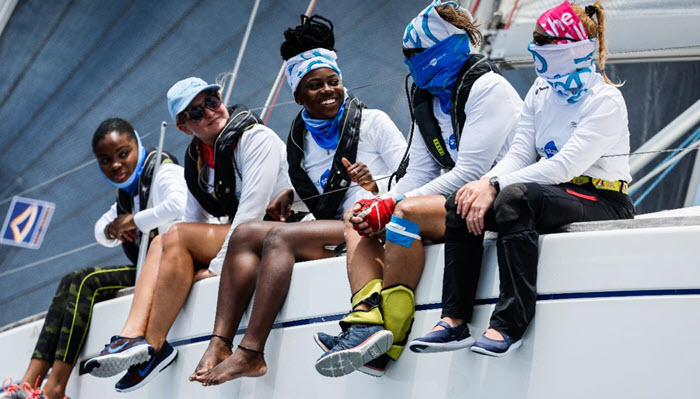 The penultimate race day at Antigua Sailing Week celebrated women on the water, noting how female participation at Antigua Sailing Week was on the rise and this year with 70% of the fleet have women crew. Six boats are skippered by women: Susan Glenny on Olympia’s Tigress; Katy Campbell on Panacea X; Lyssandra Barbieri on Hatha Maris; Melanie Rensing on KH+P Nolde; Alice Martin on Jack Tai II/Painkiller and Jocelyn Mclaren on Belafonte.