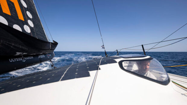 (June 25, 2023) – While its Day 12 for the IMOCAs and VO65s that are racing in the final leg of The Ocean Race 2023, overall leader 11th Hour Racing Team is on their ninth day delivering their boat from The Netherlands to Genova, Italy. A collision 17 minutes into Leg 7 required their retirement and a return for repairs, but they now seek to finish what they started. Here’s an onboard update: