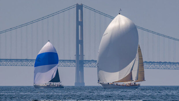 (July 24, 2023) – The dreaded “light and variable” wind forecast has descended upon the boats still racing in the 2023 Chicago Yacht Club Race to Mackinac presented by Wintrust, stalling the fleet in northern Lake Michigan.