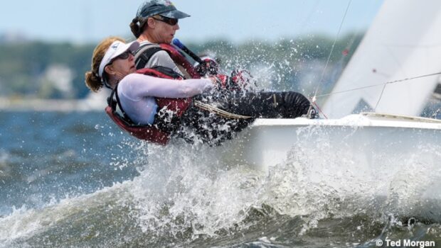 Change what you can. Your angles will get bigger upwind, and you need to create a more powerful sail plan (are you easing outhaul, cunningham, etc.?). How you sail downwind may need to change, too. Dead downwind is likely not going to work. Heating it up to power through the chop, even if it takes your angle farther from your downwind mark(s), is important. Remember, on most boats, it’s way easier to keep the boat moving than to get it moving once again once you have stopped. Heat it up downwind. Keep it footing upwind, and keep it rolling! – Full story