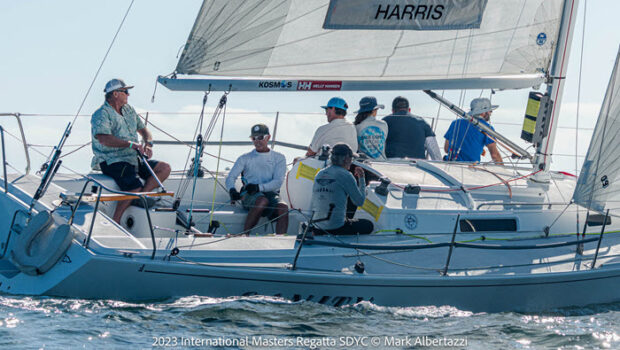 Scott Harris representing Coronado Yacht Club won the 41st running of the International Masters Regatta on October 20-22 in San Diego, CA. With 12 J/105 teams from Canada, Germany, Mexico, and the USA, Harris posted nine top five scores in the 12-race series to win by seven points over Tad Lacey with Cory Sertl three points back in third. Harris’ team had Chuck Sinks, Peter Van Waay, Justin Bingham, Jon Rogers, and Seth Miller.