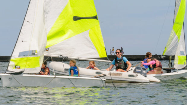 The Girls Who Sail program uses RS Feva XLs, so they get an introduction to a faster boat and sailing with another person, which puts an emphasis on teamwork and communication – all part of the goals of the week-long camp.