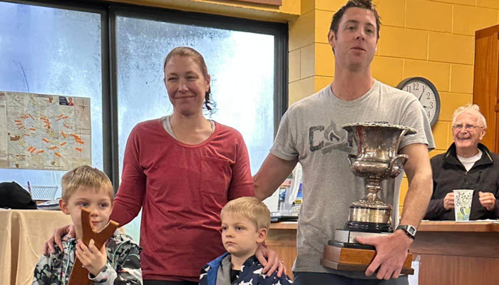 Seventy-two teams competed in the 2024 Flying Scot Midwinter Championship on February 16-18 in Eustis, FL. The weather on Lake Eustis provided two light air races on the first day, no wind and plenty of rain on day two, with two races in great wind and loads of rain on the third day. The Championship winners were Tyler and Carrie Andrews (above) and Challenger fleet winners were Henry Picco and Jeff Bott. – Details