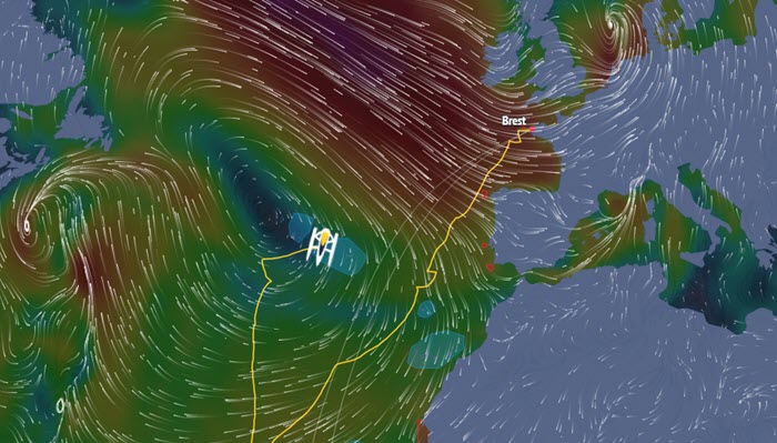 “The problem was that I couldn’t go fast enough to stay in front of the second depression, I had to go at more than 30 knots and we weren’t sure I could do it in these sea conditions. So that means if I was caught by the other depression, the wind would change direction 180° and could really, really build. This is often what causes the big storms we can have. It creates a very strong wind against the sea, situation with two seas crossing each other, and that is very dangerous for boats.