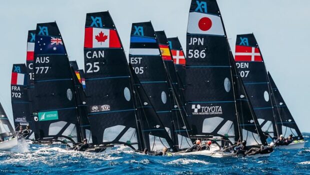 Both Canada and USA are using the 2024 49erFX World Championship as the first of two events for their Paris 2024 Olympic selection in the Women’s Skiff event. After three days of racing, Georgia and Antonia Lewin-LaFrance (CAN) and Stephanie Roble/ Maggie Shea (USA) both qualified into the Gold Flight while their closest national threat missed the cut. Racing is being held March 5-10 in Lanzarote, Spain. – Details
