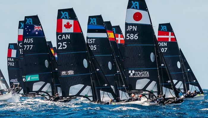 Both Canada and USA are using the 2024 49erFX World Championship as the first of two events for their Paris 2024 Olympic selection in the Women’s Skiff event. After three days of racing, Georgia and Antonia Lewin-LaFrance (CAN) and Stephanie Roble/ Maggie Shea (USA) both qualified into the Gold Flight while their closest national threat missed the cut. Racing is being held March 5-10 in Lanzarote, Spain. – Details