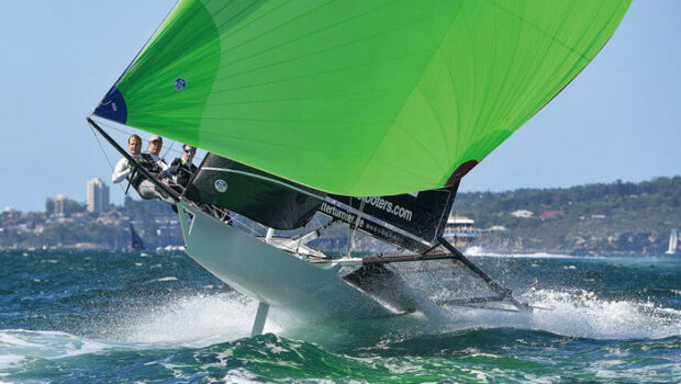 As a youngster, he first saw the 18-footers in action in a movie. “It showed them racing in Sydney Harbor, and it blows my mind to think this is what encouraged me to fly to Australia 25 years later.” It was a foreshadowing, that he would not only witness this dynamic fleet and action, but become a part of the 18-footer family.