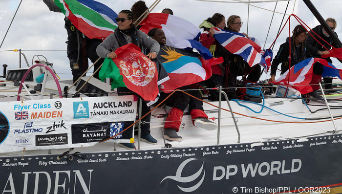 Cowes, UK (April 16, 2024) – The teams are finishing the fourth and final leg of the 2023-24 Ocean Globe Race, completing the 6599 nm course from Punta del Este, Uruguay. The anticipated finish of the 58-foot Maiden occurred today at 10:52 UTC after 41 days, and while just fifth in both line honors and handicap, she is positioned to claim overall honors of the round the world race.