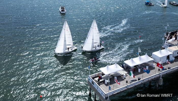 Long Beach, CA (April 25, 2024) – The first stage of the 59th edition of the Congressional Cup concluded with the double round robin series and the top four teams – Ian Williams (GBR), Jeppe Borch (DEN), Dave Hood (USA), and Gavin Brady (USA) – advancing to the Quarter-final stage of the event.